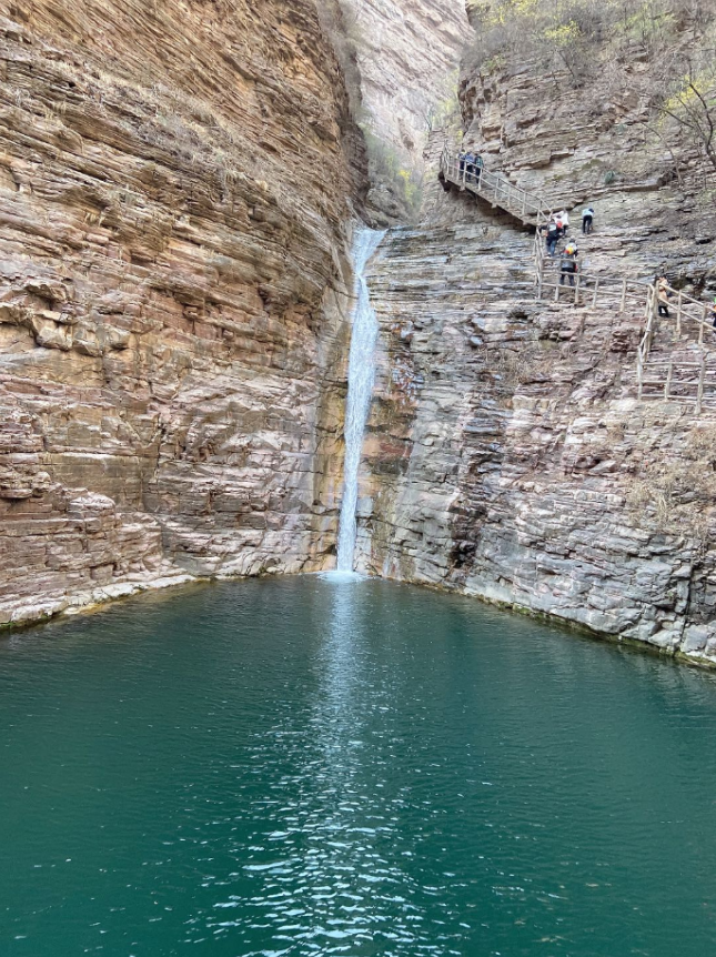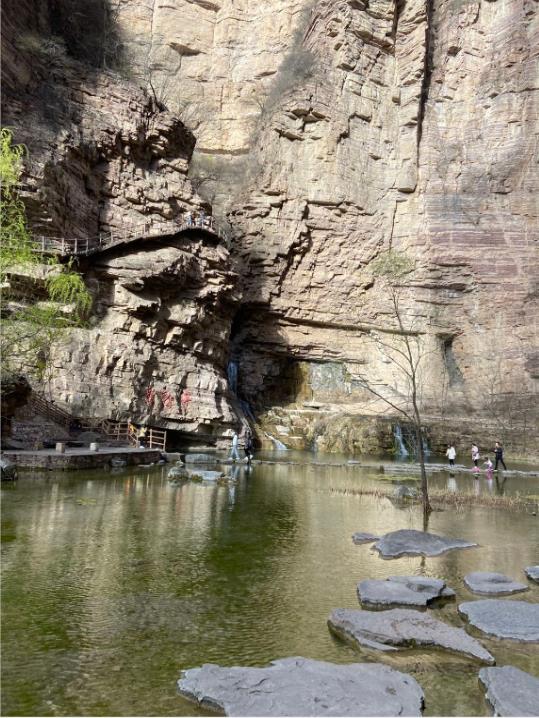 27日早上在公司集合后,大家乘坐大巴車經(jīng)過三個小時的行程,到達了太行大峽谷景區(qū)。入住酒店及午餐后,首先游覽了有太行魂之稱的王相巖景區(qū)。王相巖景區(qū)自唐以來,享有盛名,景區(qū)東臨溪水,西依懸崖,左右兩側(cè)峭壁環(huán)繞,形成了一個閉合性極強的圍谷,暗合中國古代風水學“左青龍、右白虎、前朱雀、后玄武”的理想模式,吸引了歷代名人雅士來此修身隱居。在攀爬過程中,陡峭、曲徑隨處可見。大家一方面驚嘆大自然的巧奪天工,一方面感受大自然的美。